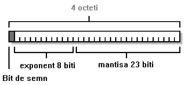 Limbajul C# păstrează valoarea pe o mantisă de 23 de biți (care conține partea fracționară), un exponent de 8 biți (care conține puterea cu care se înmulțește numărul) și un singur bit de semn (care spune compilatorului dacă valoarea este pozitivă sau negativă). Cu alte cuvinte, în cazul în care o variabilă conține valoarea 3.4E+38, bitul de semn va fi 0, ceea ce indică un număr pozitiv, mantisa de 23 de biți va conține o reprezentare binară a numărului 3.4, iar exponentul de 8 biți va conține reprezentarea binară a 1038