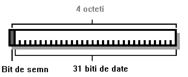 O variabilă este un nume pe care compilatorul îl atribuie uneia sau mai multor locații de memorie. Atunci când declarați o variabilă într-un program, trebuie să specificați tipul și numele acesteia. Tipul unei variabile specifică tipul de valori pe care variabila le poate stoca și setul de operații pe care programul le poate executa asupra acestora. Pentru tipul de variabilă int, compilatorul C# alocă de obicei 32 de biți (4 octeți). Tipul de variabilă int poate stoca valori cuprinse între -2,147,483,648 și 2,147,483,647. Următoarea imagine ilustrează modul în care variabila int este reprezentată în C#: